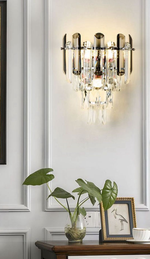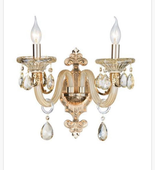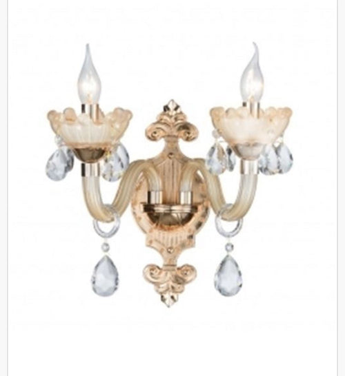 Lampadario Cristallo Dorato e Gocce Trasparenti -